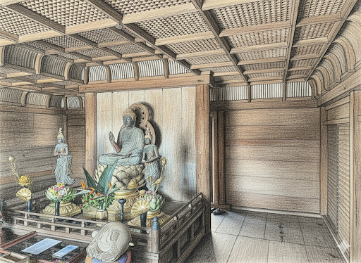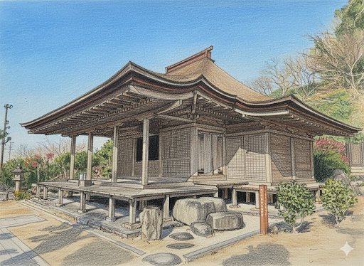 愛知県最古の木造建築として知られる阿弥陀堂建築。三間四方・一重、寄棟造、檜皮葺。正面に一間の庇、左背面に二間の庇を付す。面取角柱、半蔀・板戸・舞良戸など鎌倉後期の技法を示す。内部は須弥壇と高欄を備え、阿弥陀三尊像(県指定文化財)を安置。伝承では源頼朝が命じた三河七御堂の一つとされるが、建立は鎌倉後期(13~14世紀初頭)とされる。1954年の修理で檜皮葺に復原。1955年国宝指定。